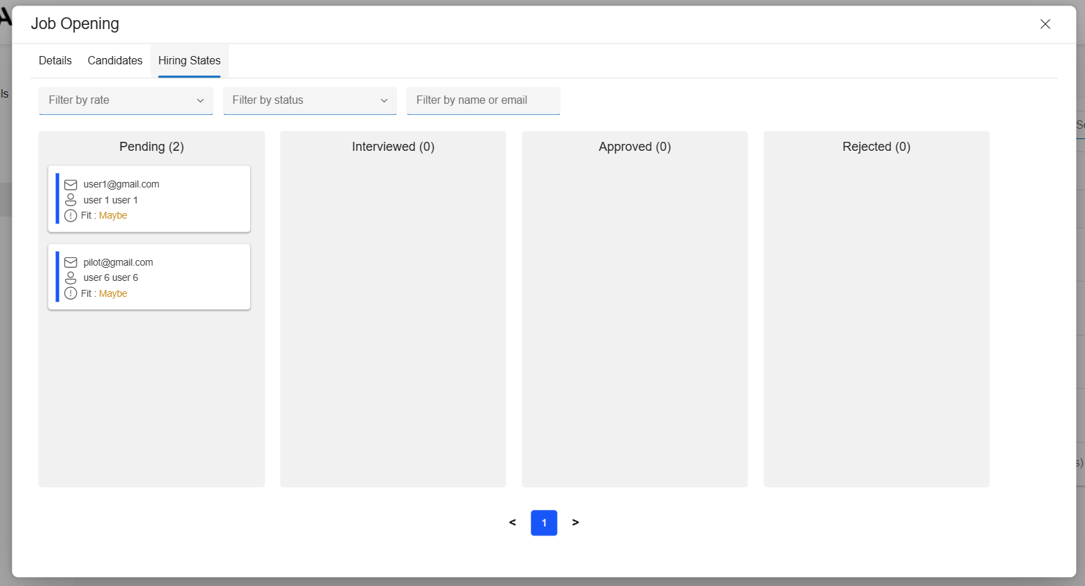 Recruiters can move the candidates between hiring stages. (Drag and drop)