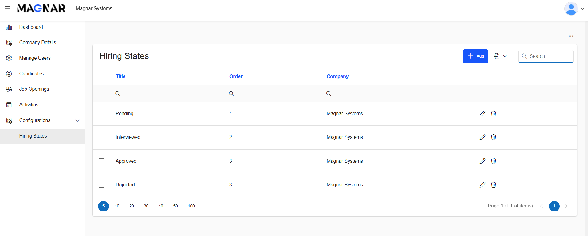 Recruiters can configure and manage Hiring States such as Pending, Interviewed, Rejected, and more to standardize the candidate pipeline across the company.