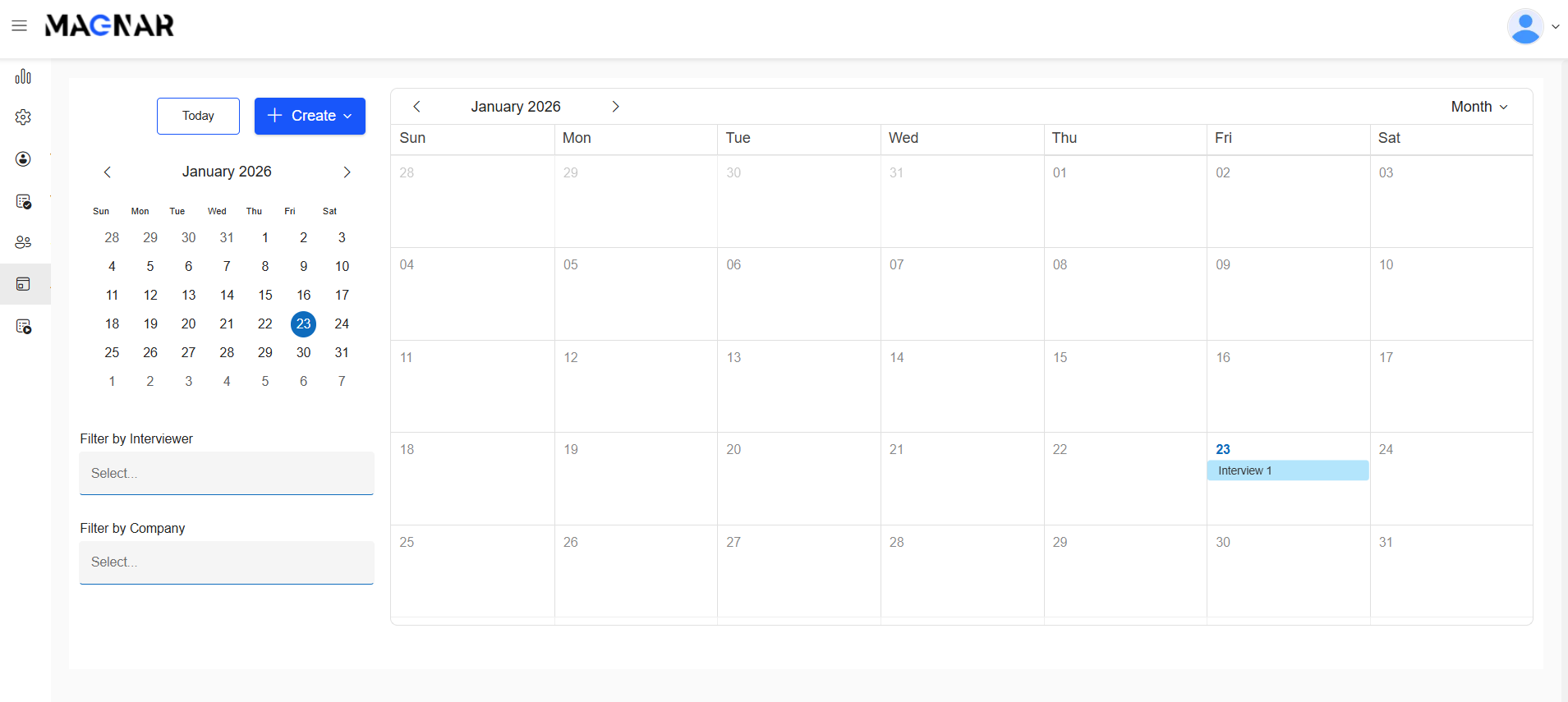 The Activities page helps manage and track all interviews in all companies, in one place. It gives a clear calendar view of what’s scheduled, who’s involved, and when things are happening.